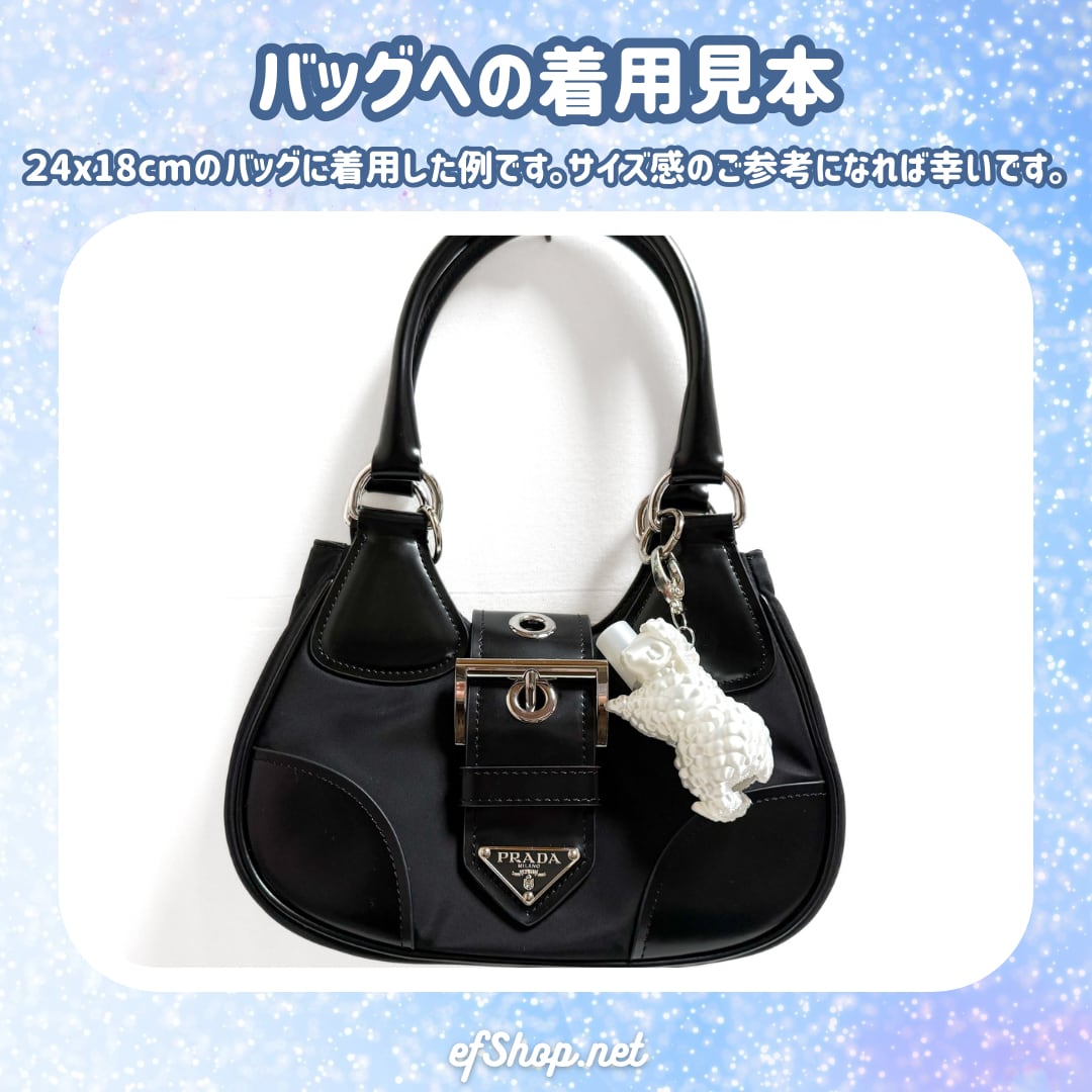 キーホルダーチャームが付いているのでバッグ等に付けて持ち歩けます。