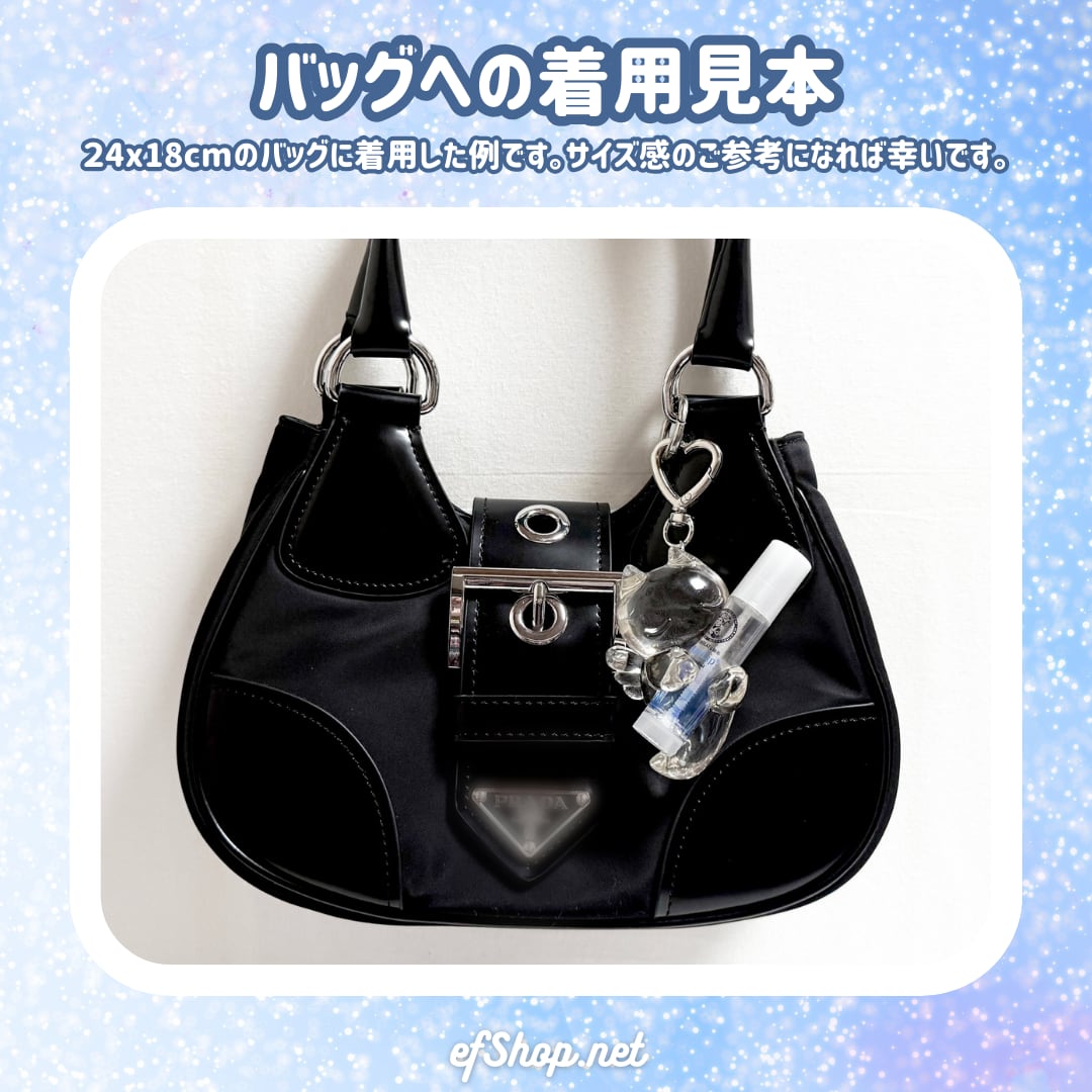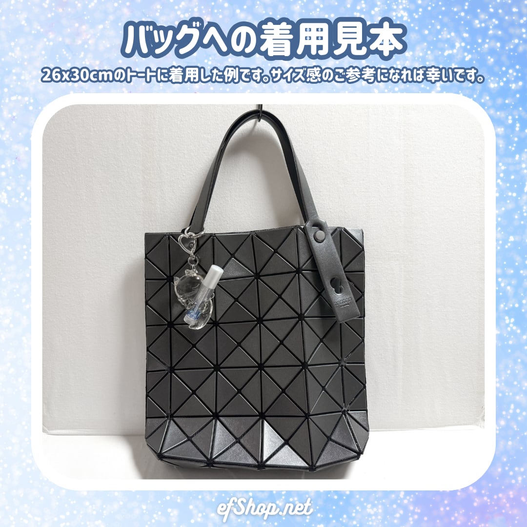 カラビナキーホルダーチャームが付いているのでバッグ等に付けて持ち歩けます。