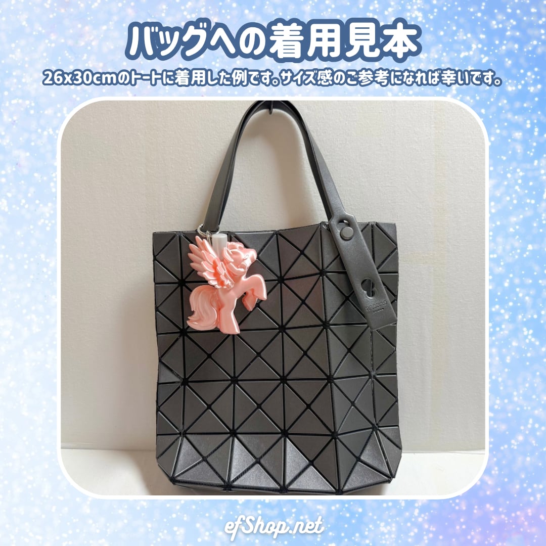 カラビナキーホルダーチャームが付いているのでバッグ等に付けて持ち歩けます。
